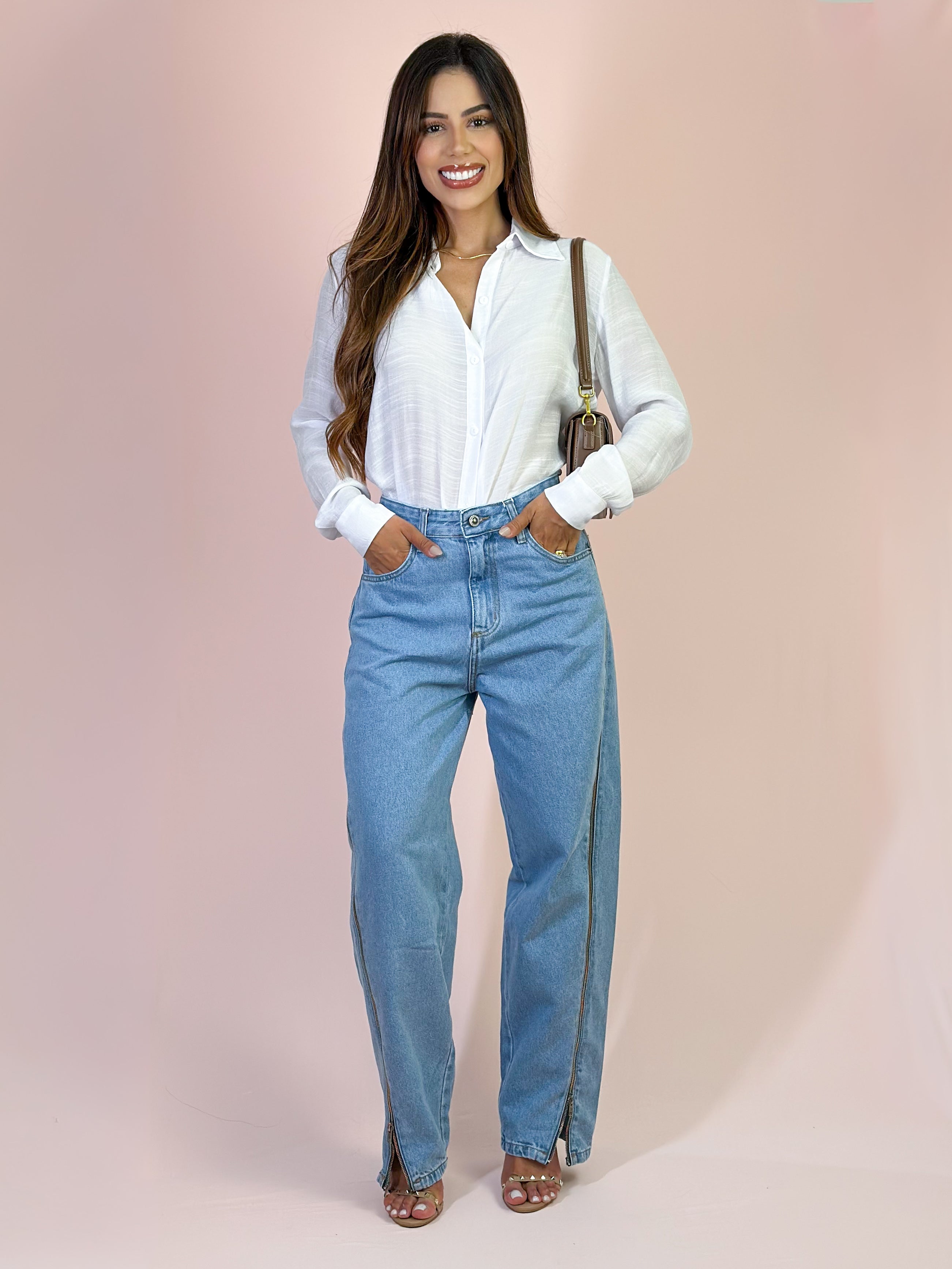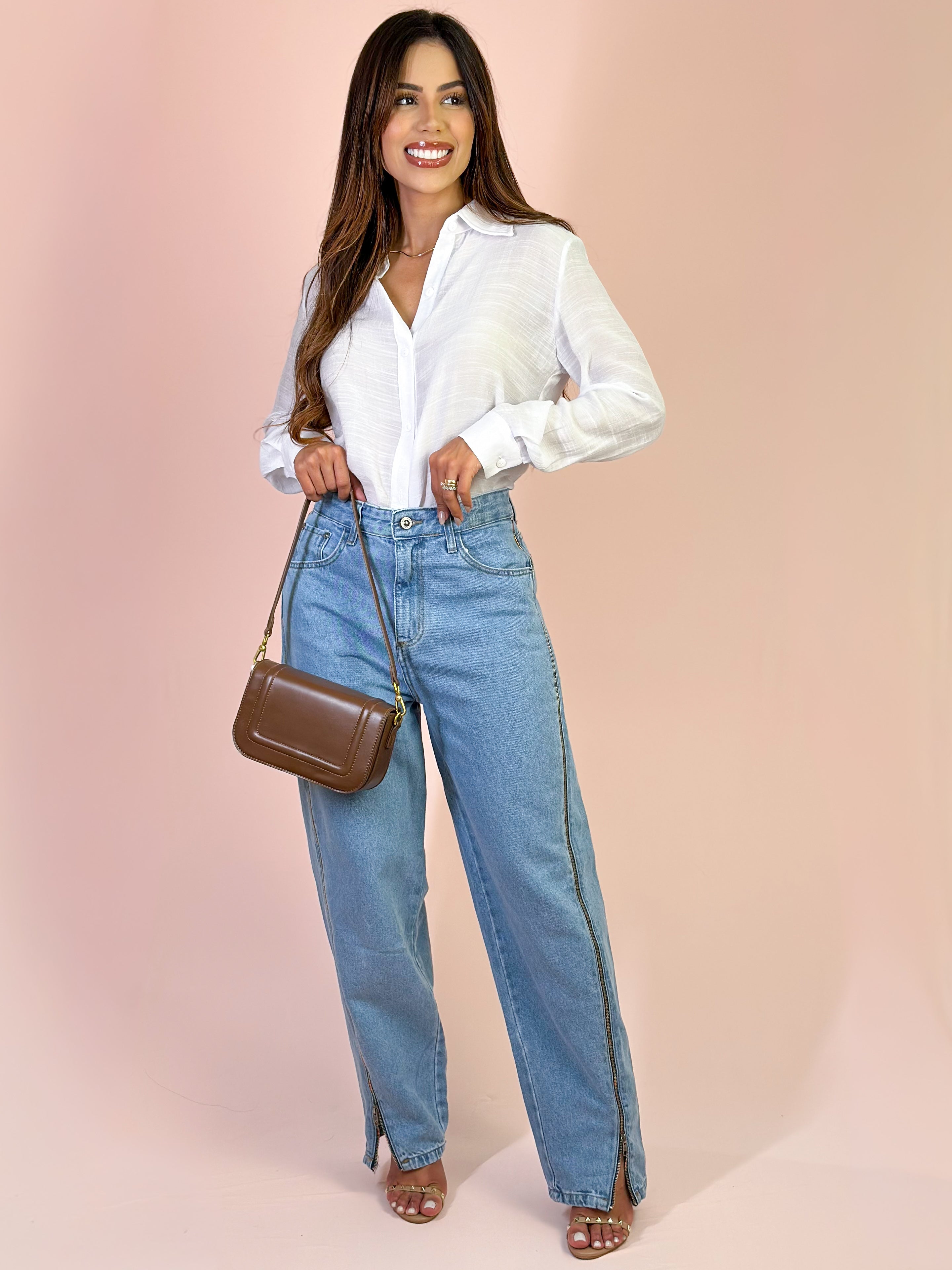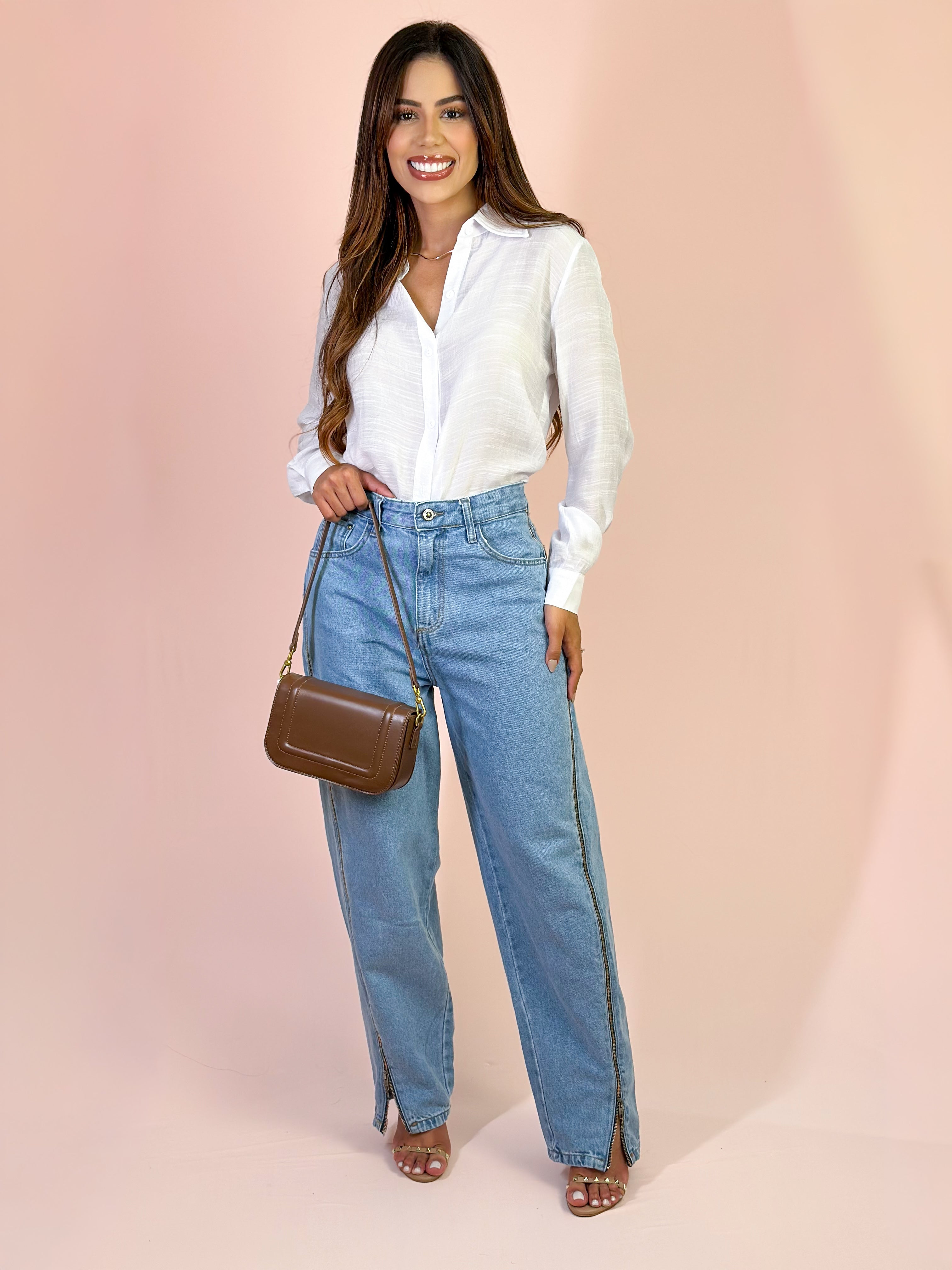 Adicione a Calça Alcance Ballonzip Jeans ao seu guarda-roupa para um visual moderno, confortável e cheio de personalidade! ✨ MEDIDAS DA MODELO LÍBIA : Altura: 1,65cm Busto: 89cm Cintura: 69cm Quadril: 103cm Manequim: 38 - P